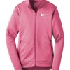 Designed to help keep you warm during cold-weather workouts, this breathable Nike Therma-FIT style manages moisture to perform. It’s designed with a zip-through collar, reverse coil zippers, front zippered pockets and open cuffs. Tailored for a feminine fit. The contrast heat transfer Swoosh design trademark is on the left sleeve. Made of 7-ounce, 100% polyester Therma-FIT fabric.